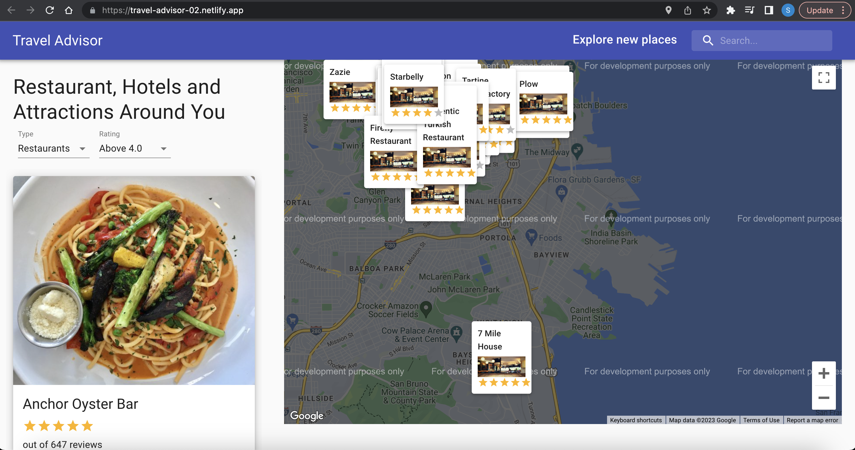 This is a Travel Advisor App to explore Restaurants, Hotels and Tourist Attractions anywhere in the world.